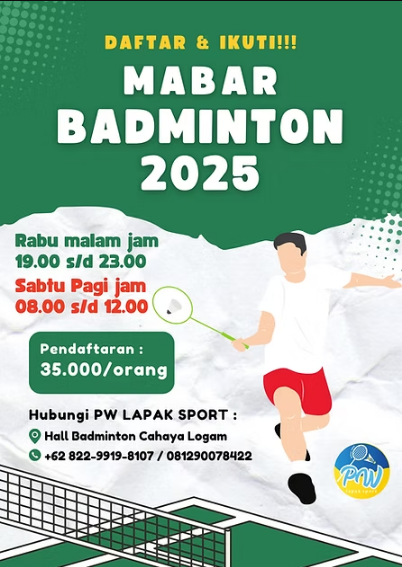 Ikuti keseruan event olahraga dengan promo perlengkapan, servis raket gratis, dan hadiah menarik. Ayo datang dan rasakan pengalaman olahraga terbaik bersama PW Lapak Sport!
